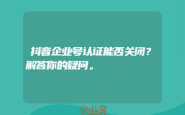 - 抖音企业号认证能否关闭?解答你的疑问。