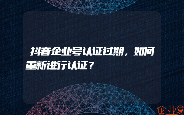 - 抖音企业号认证过期如何重新进行认证?一、了解认证过期情况在使用抖音企业号时,可能会遇到认证过期的情况。这通常意味着您的企业信息或资质需要进行更新或重新审核。首先,您需要确认认证过期的具体时间以及过期的具体原因。确保在重新进行认证之前处理好所