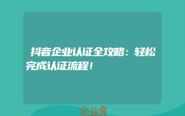 - 抖音企业认证全攻略:轻松完成认证流程!