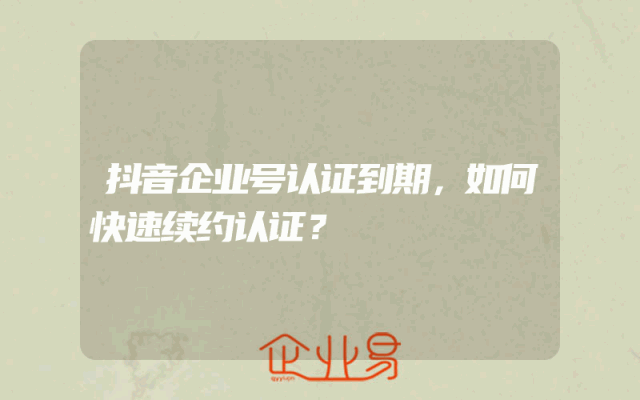 - 抖音企业号认证到期,如何快速续约认证一、认证到期提醒与准备抖音企业号认证到期后,为确保您的企业账号正常运营,抖音系统会提前发送认证到期提醒。收到提醒后,企业应做好准备工作,包括整理续期所需的营业执照、企业资质证明等相关材料。二、进入认证续约