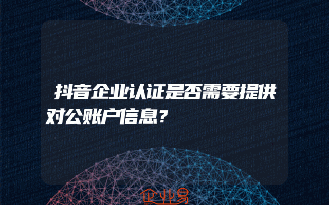 - 抖音企业认证是否需要提供对公账户信息?一、抖音企业认证概述随着互联网的快速发展,抖音已经成为一个拥有巨大用户群体的社交媒体平台。企业认证是抖音平台为企业提供的一项权威认证服务,旨在区分普通用户与企业账号,提高企业在抖音上的公信力和知名度。在