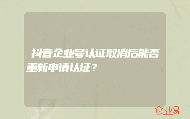- 抖音企业号认证取消后能否重新申请认证?一、抖音企业号认证的意义与流程抖音作为一款流行的短视频平台,吸引了众多企业和个人用户的关注。企业号认证是抖音平台为企业用户提供的一项权威认证服务,通过认证,企业可以提升自己的公信力和品牌影响力。认证流程