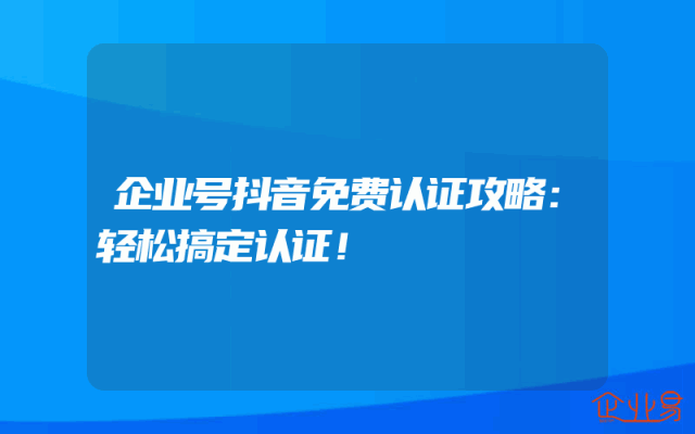 - 企业号抖音免费认证攻略:轻松搞定认证!