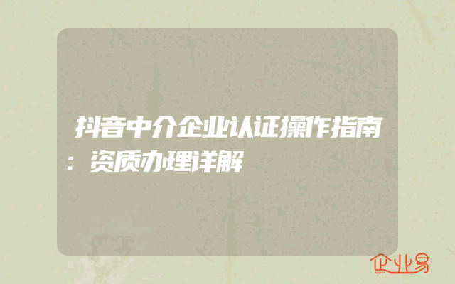 - 抖音中介企业认证操作指南:资质办理详解一、了解抖音企业认证的重要性随着抖音平台的迅速发展,越来越多的企业意识到在抖音上进行认证的重要性。企业认证不仅可以提升企业的公信度和品牌形象,还能获得更多的曝光机会和特权功能。因此,作为抖音中介企业,了