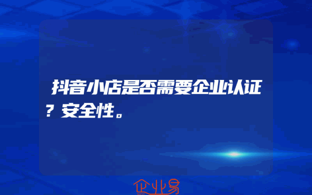 - 抖音小店是否需要企业认证?安全性。
