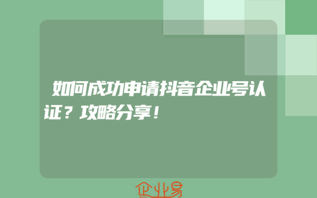 - 如何成功申请抖音企业号认证?攻略分享!一、了解抖音企业号认证的重要性随着抖音平台的迅速发展,越来越多的企业意识到了在抖音上建立官方账号的重要性。企业号认证不仅能够提升品牌形象,还能增加用户信任度,为企业带来更多的曝光和潜在商机。因此,成功申