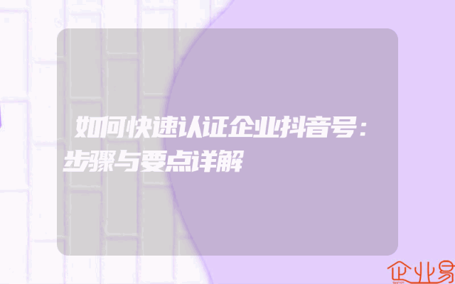 - 如何快速认证企业抖音号:步骤与要点详解一、了解企业抖音号认证的重要性在当今数字化时代,抖音已经成为企业推广品牌、扩大影响力的关键平台之一。拥有一个认证的企业抖音号,不仅能提升品牌信誉,还能增加目标用户的关注度。企业抖音号认证后,能享受到更多