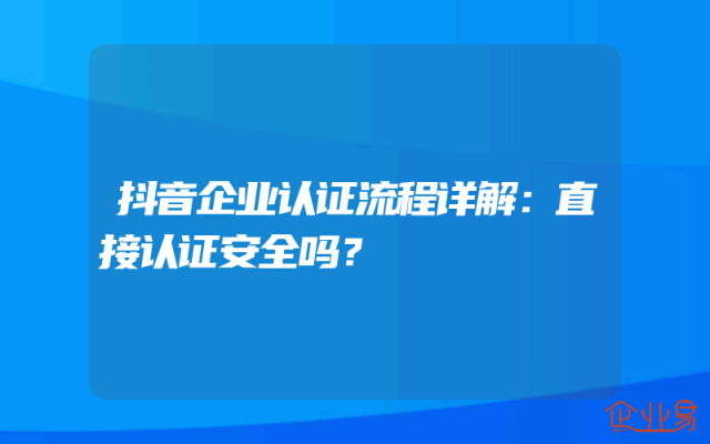 - 抖音企业认证流程详解:直接认证安全吗?