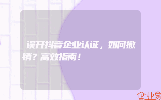 - 误开抖音企业认证,如何撤销?高效指南!