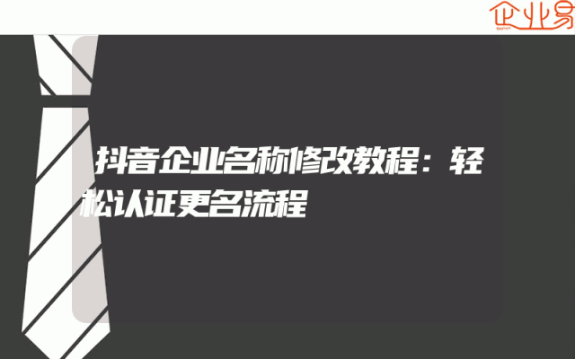 - 抖音企业名称修改教程:轻松认证更名流程一、了解抖音企业名称修改的重要性随着企业的发展和品牌战略调整,企业名称的修改变得越来越常见。在抖音这一社交媒体平台上,一个合适的名称对于企业的形象宣传至关重要。因此,了解如何轻松修改抖音企业名称,有助于