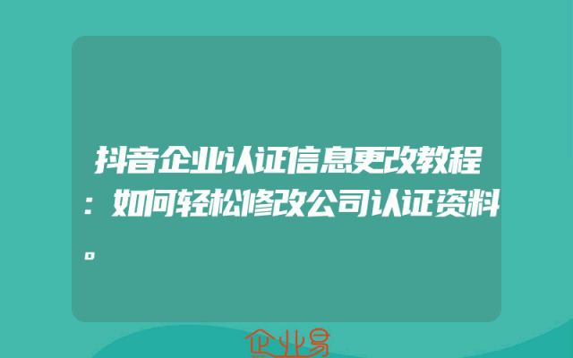 - 抖音企业认证信息更改教程:如何轻松修改公司认证资料。