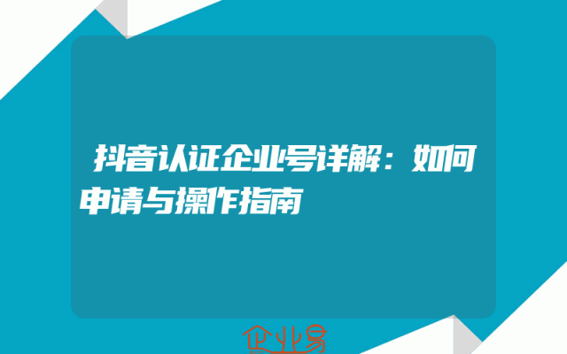 - 抖音认证企业号详解:如何申请与操作指南