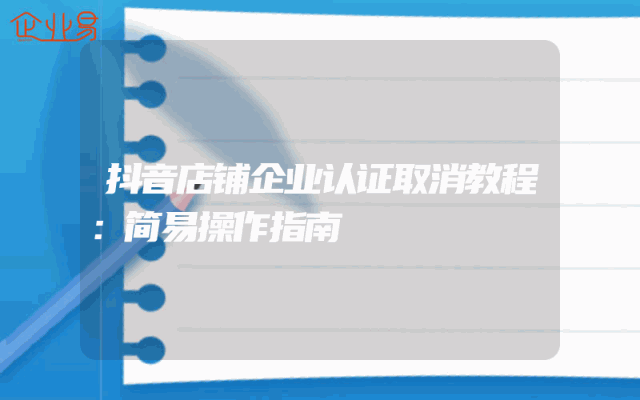 - 抖音店铺企业认证取消教程:简易操作指南