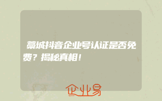 - 藁城抖音企业号认证是否免费?揭秘真相!