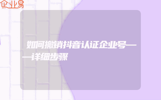 - 如何撤销抖音认证企业号——详细步骤解析了解撤销企业号的背景和要求随着抖音平台的不断发展,企业号作为商家与消费者之间的桥梁逐渐普及。但有时出于某些原因,我们可能需要撤销已经认证的企业号。撤销抖音认证企业号的前提是要清楚相关的政策和流程,以确保