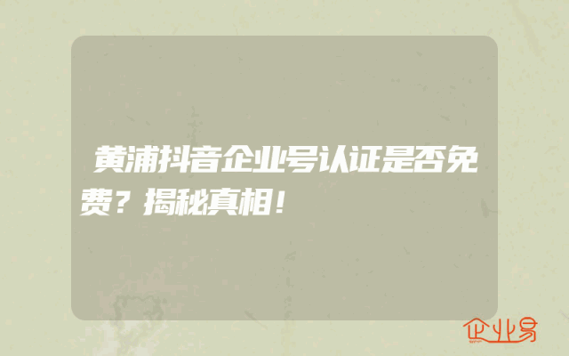 - 黄浦抖音企业号认证是否免费?揭秘真相!