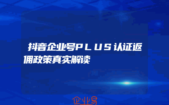 - 抖音企业号PLUS认证返佣政策真实解读