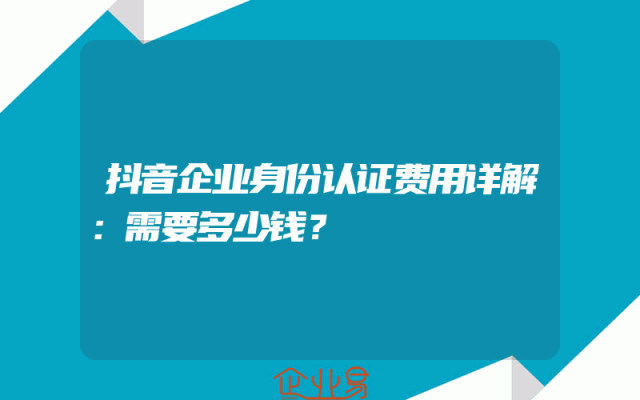 - 抖音企业身份认证费用详解:需要多少钱?