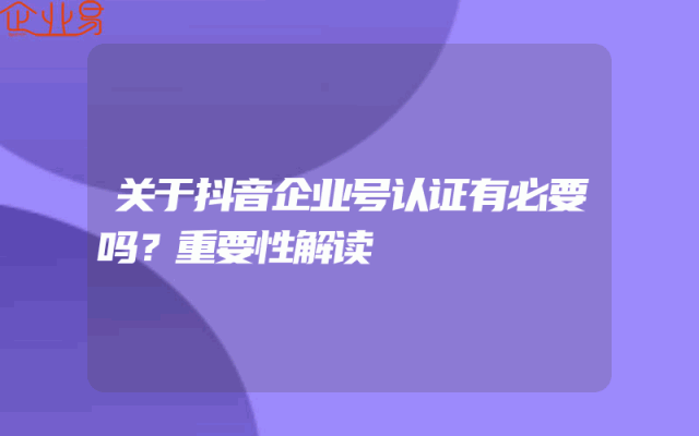 - 关于抖音企业号认证有必要吗?重要性解读