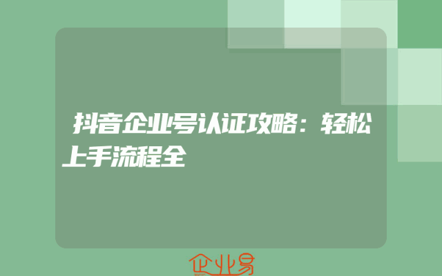 - 抖音企业号认证攻略:轻松上手流程全