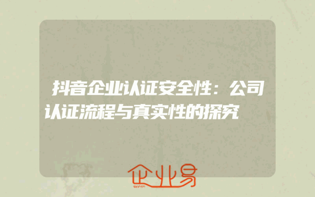 - 抖音企业认证安全性:公司认证流程与真实性的探究