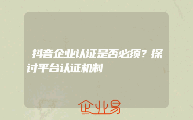 - 抖音企业认证是否必须?探讨平台认证机制一、企业认证在抖音平台的重要性随着互联网的深入发展,社交媒体成为企业宣传推广的重要渠道。抖音作为一款短视频社交平台,吸引了大量用户的关注。在这个背景下,企业认证在抖音平台显得尤为重要。企业认证不仅能够提