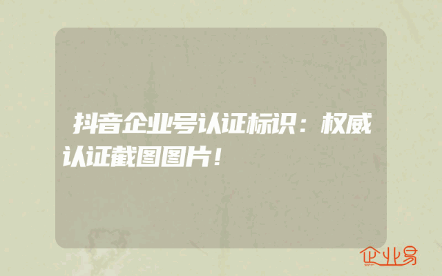 - 抖音企业号认证标识:权威认证截图图片一、抖音企业号认证的重要性随着移动互联网的高速发展,社交媒体成为了企业宣传推广的重要渠道。抖音作为一款短视频社交应用,吸引了大量用户的关注。因此,企业通过在抖音上进行认证,不仅能提高品牌的曝光度,还能增加