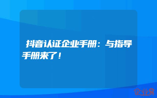 - 抖音认证企业手册:解析与指导手册来了!抖音作为中国最大的短视频社交平台之一,吸引了众多企业和个人用户的关注。对于想要在抖音上开展业务的企业来说,如何更好地认证并提升企业的可见性和影响力变得至关重要。