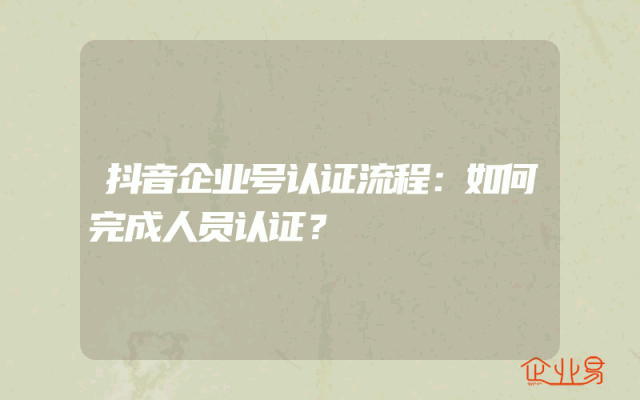 - 抖音企业号认证流程:如何完成人员认证?