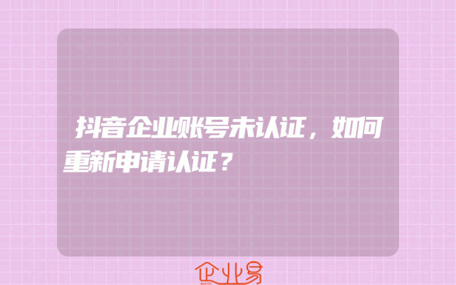 - 抖音企业账号未认证,如何重新申请认证?