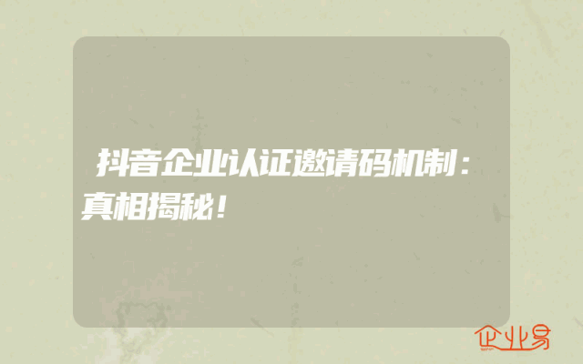 - 抖音企业认证邀请码机制解析:真相揭秘!一、邀请码机制概述抖音作为一款广受欢迎的短视频社交平台,吸引了众多企业入驻。为了保障企业认证的质量和效率,抖音推出了企业认证邀请码机制。该机制要求企业在完成认证过程中,通过获取邀请码来加快审核速度,提高