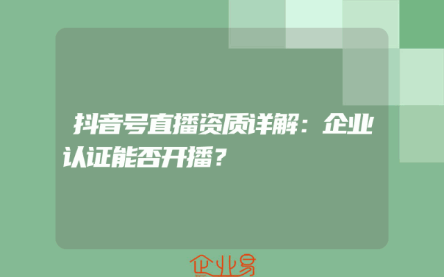 - 抖音号直播资质详解:企业认证能否开播?一、抖音直播平台的资质要求抖音作为国内领先的短视频平台,对于直播内容及其参与者有一定的规范和资质要求。为了确保直播内容的健康、合法与正面性,抖音建立了完善的认证体系。在这一体系中,企业用户需要满足特定的