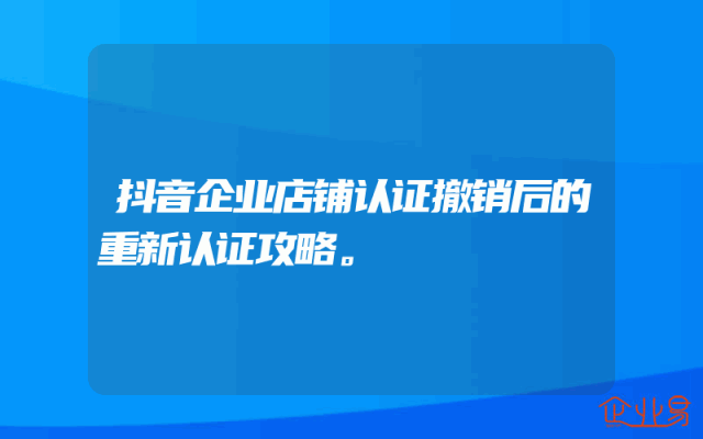 - 抖音企业店铺认证撤销后的重新认证攻略。