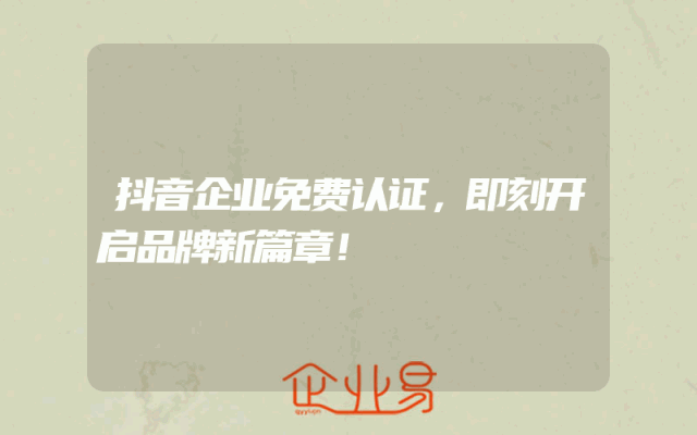 - 抖音企业免费认证,即刻开启品牌新篇章!