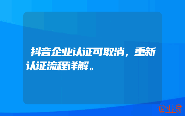 - 抖音企业认证可取消,重新认证流程详解。