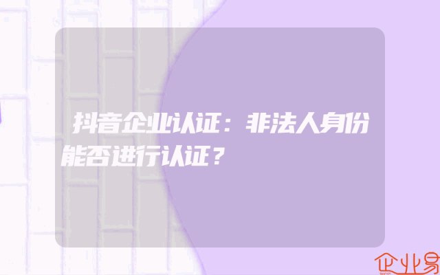 - 抖音企业认证:非法人身份能否进行认证?