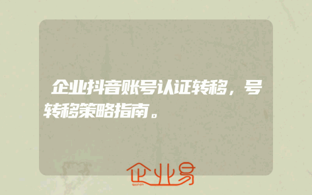 - 企业抖音账号认证转移,号转移策略指南。