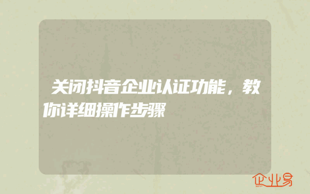 - 关闭抖音企业认证功能,教你详细操作步骤