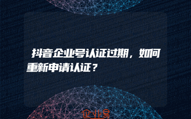 - 抖音企业号认证过期,如何重新申请认证?
