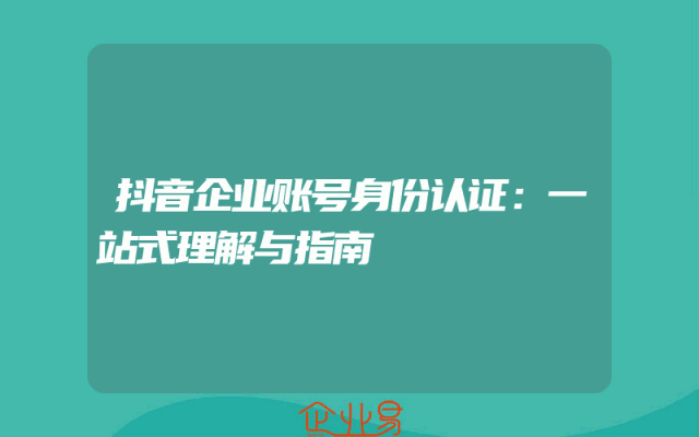 - 抖音企业账号身份认证:一站式理解与指南