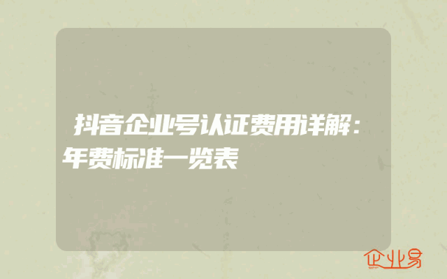 - 抖音企业号认证费用详解:年费标准一览表