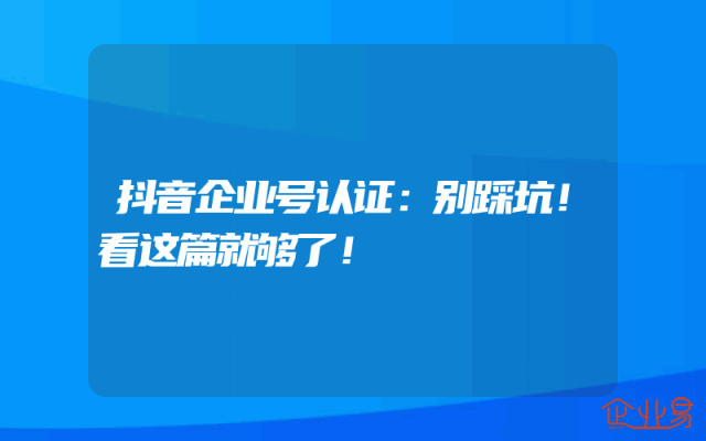 - 抖音企业号认证:别踩坑!看这篇就够了!