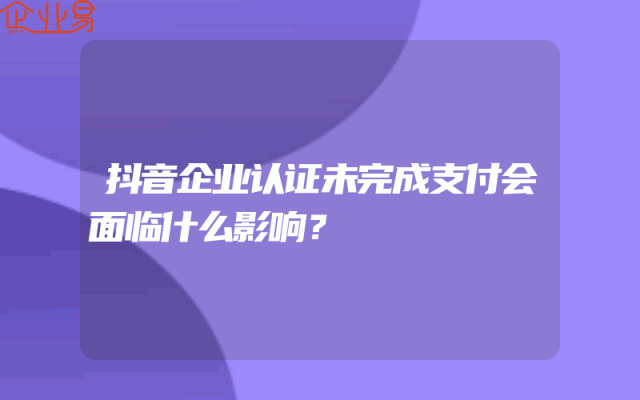 - 抖音企业认证未完成支付会面临什么影响?一、未完成支付的抖音企业认证概述在抖音平台上进行企业认证,是为了提升企业的品牌形象和知名度,从而获得更多的商业机会。在提交企业认证申请后,需要支付相应的认证费用以完成整个流程。如果认证过程中支付环节未完