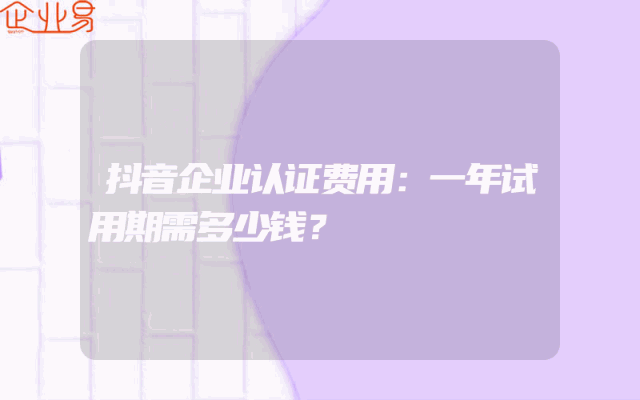 - 抖音企业认证费用:一年试用期需要多少钱?一、抖音企业认证简介随着抖音平台的迅速发展,越来越多的企业开始关注抖音的企业认证,通过认证可以提升企业在抖音平台上的信誉度和知名度。抖音企业认证是针对企业在抖音平台上开展营销推广的一种服务,通过提交相