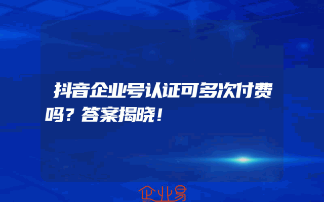 - 抖音企业号认证可多次付费吗?答案揭晓!