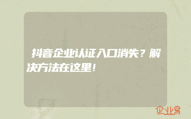 - 抖音企业认证入口消失?解决方法在这里!一、引言随着抖音平台的日益发展,越来越多的企业选择在抖音上进行认证,以扩大品牌影响力。然而,近期一些用户发现抖音企业认证入口消失了,这引发了广泛的关注和疑虑。本文将探讨此现象出现的原因,并提供相应的解决
