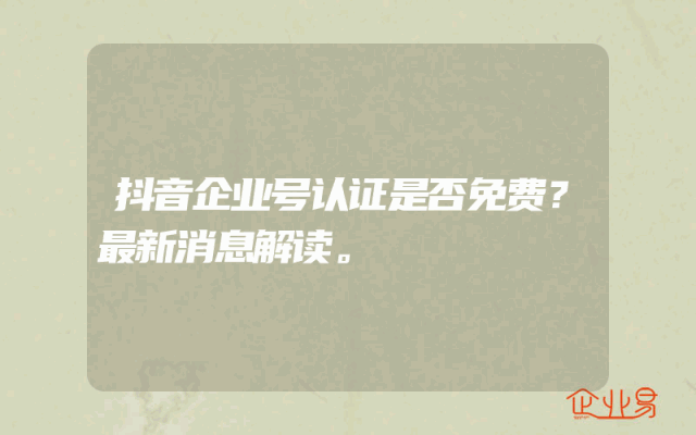- 抖音企业号认证是否免费?最新消息解读。