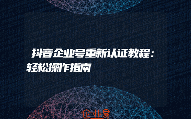 - 抖音企业号重新认证教程:轻松操作指南抖音企业号的重新认证有助于企业在抖音平台上更好地展示自身形象,推广产品和服务。本文将为您详细介绍抖音企业号的重新认证流程,帮助您轻松完成操作。一、准备工作在进行