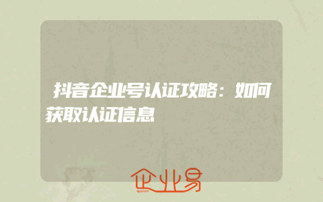- 抖音企业号认证攻略:如何获取认证信息一、了解抖音企业号认证的重要性随着抖音平台的不断发展,越来越多的企业开始重视抖音企业号的运营。而获取认证信息则是提升企业在抖音平台上的信誉和影响力的关键步骤。通过认证,企业能够证明自己的身份,增强用户的信