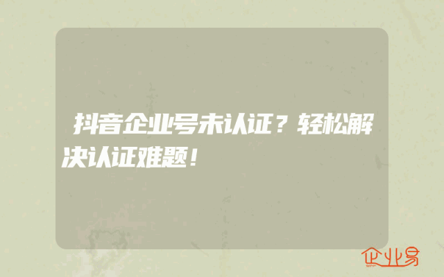 - 抖音企业号未认证?轻松解决认证难题!了解抖音企业号认证的重要性在当今数字化时代,抖音已经成为许多企业推广品牌和拓展市场的热门平台。拥有抖音企业号不仅可以帮助企业提升品牌影响力,还可以直接与广大用户互动,增加用户粘性。然而,未进行认证的企业号
